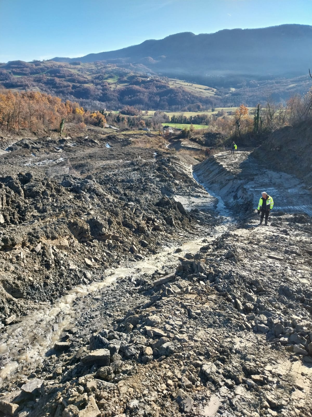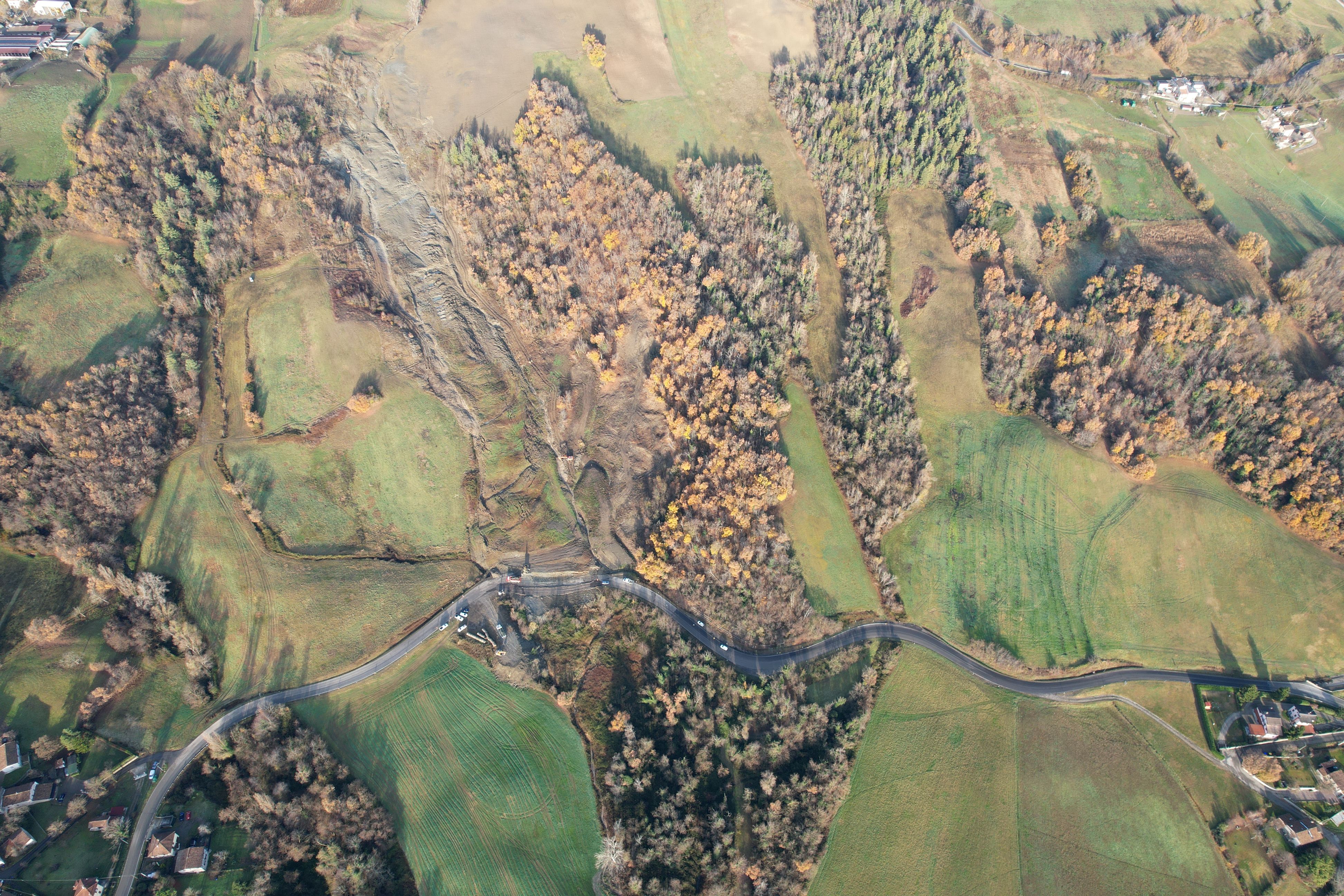Gli scavatori, quattro in tutto, continuano a lavorare senza sosta lungo la strada Statale 665 ‘Massese’: nella notte tra mercoledì 3 e giovedì 4 dicembre, il movimento franoso ha, infatti, gonfiato il terreno e spaccato l’asfalto. La “lingua” della frana è larga circa 60 metri e lunga 500 e continua a scivolare verso il basso, con una velocità comunque minore rispetto ai giorni iniziali.